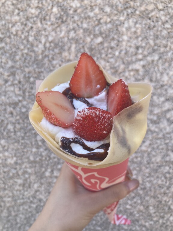 「いちごチョコバナナ」といった定番から、「ブラウニーチョコ」「レインボーマシュマロ」など初めて出会うクレープもありました。