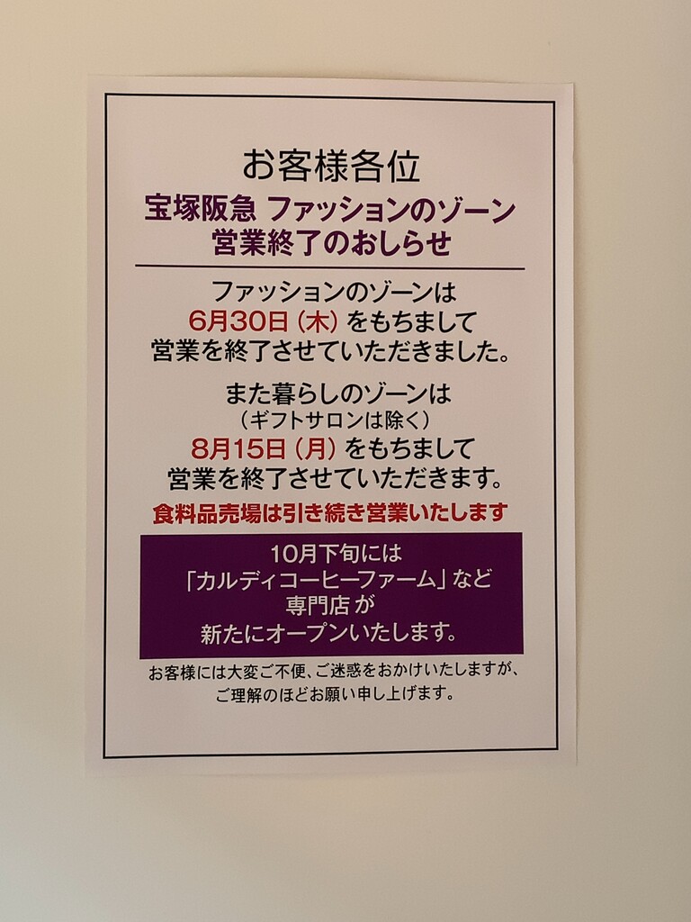 宝塚阪急、ファッションと暮らしのゾーンが営業終了でリニューアルへ