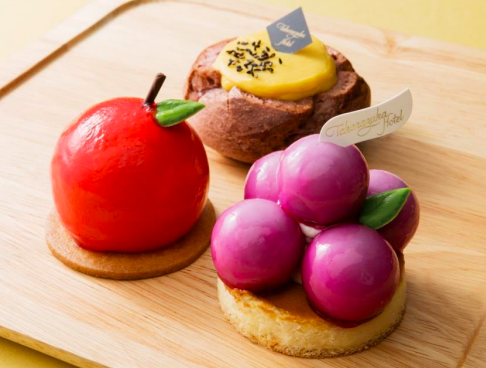 また、ロビーショップでは11月末まで「収穫の季節」をテーマにした秋限定スイーツも販売されている。軽めのベイクドチーズに丸いぶどうのムースをのせて、ぶどうに見立てたケーキ「レザン」、安納芋クリーム、キャラメリゼしたりんご、クリームチーズと安納芋が入ったシュークリーム「メッチャ芋やん!!」、まさに“りんご”な見た目が可愛く、ヨーグルトムースとりんごのムースを合わせた「ポム」の3種類。