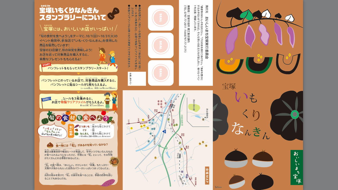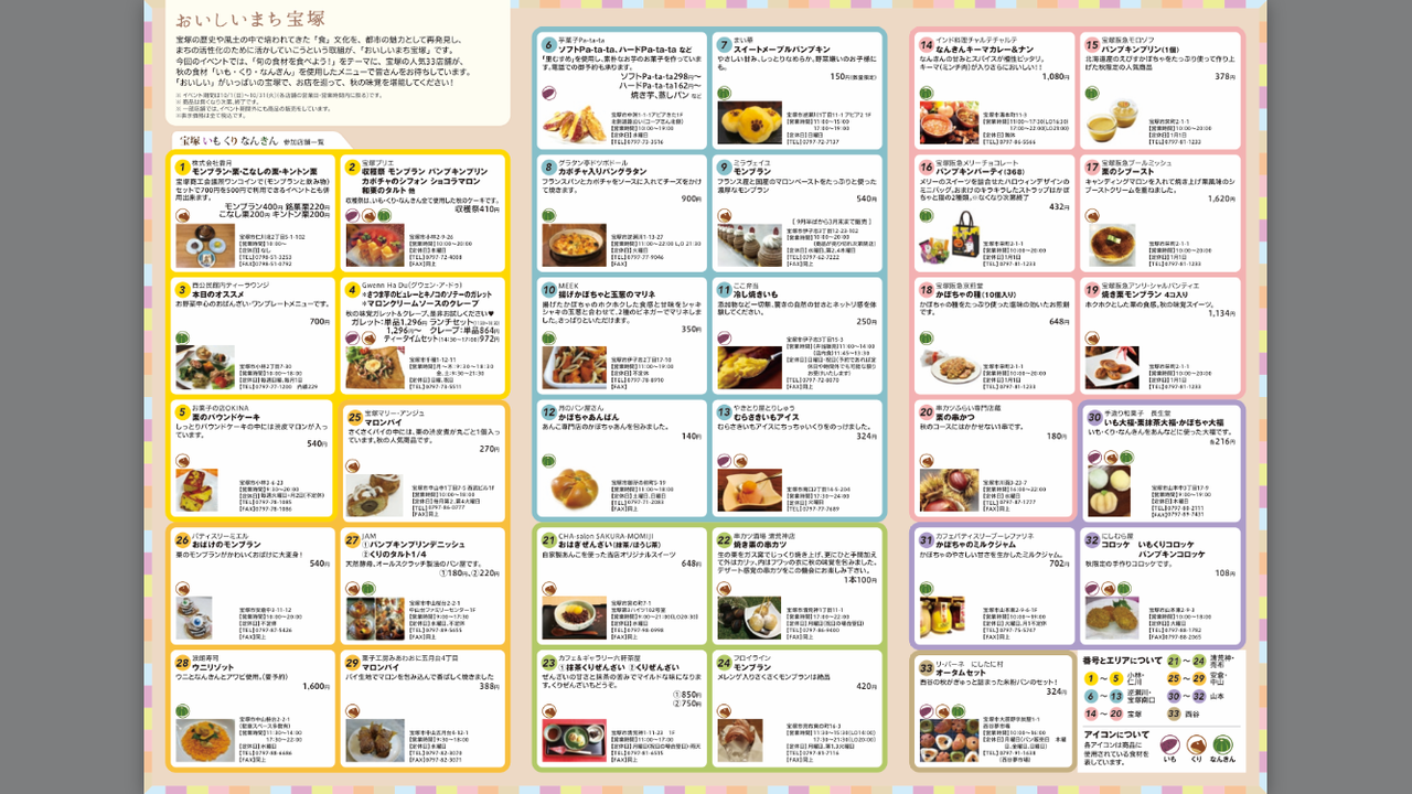 「宝塚いもくりなんきん」は、「旬の食材を食べよう!」をテーマに、市内の33のイベント参加店にて秋の食材「いも・くり・なんきん」を使用した商品を販売。