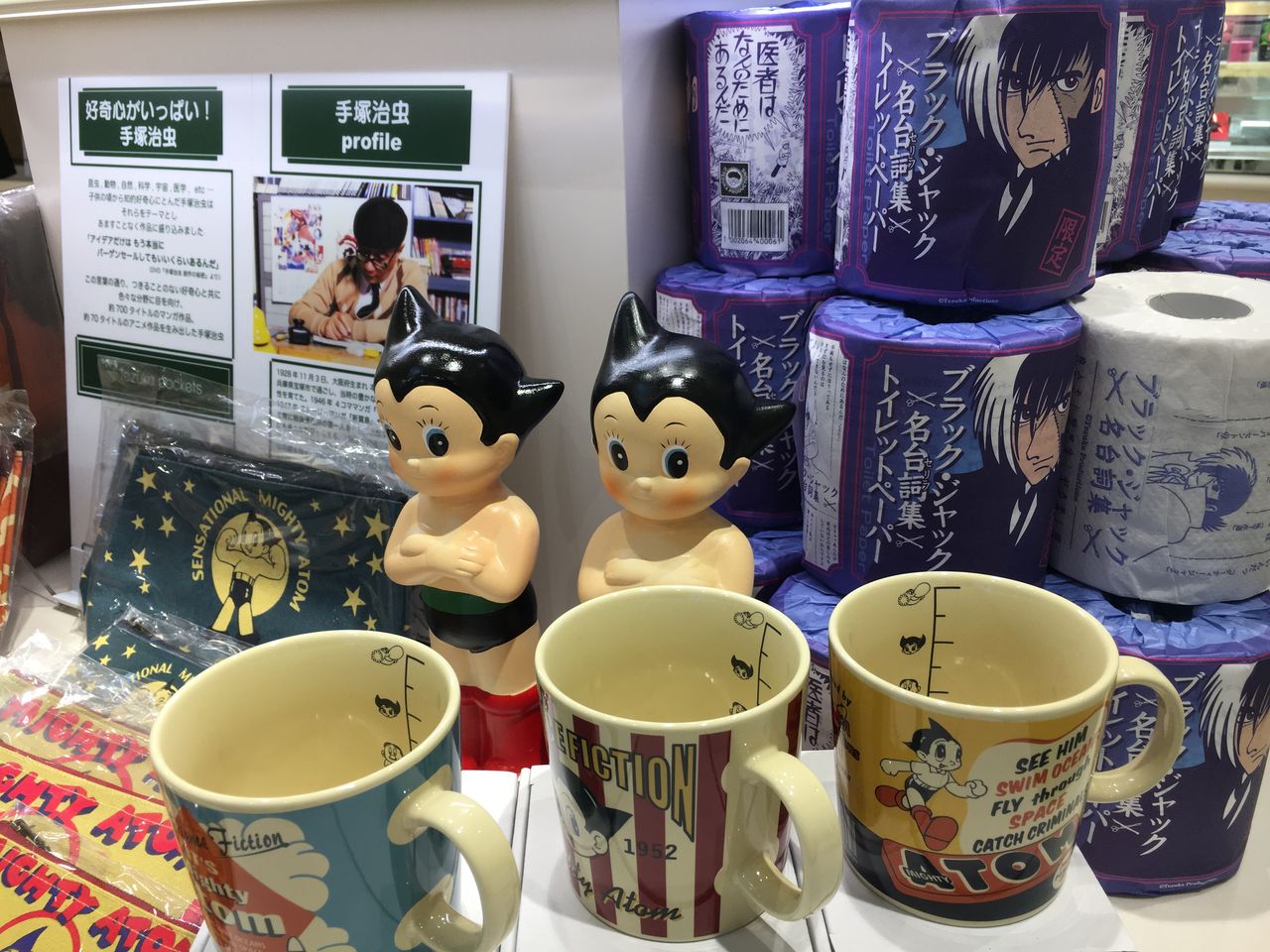 こちらは、手塚治虫グッズコーナー。ブラックジャック名台詞トイレットペーパーって、最後まで読み切ってしまいそう。