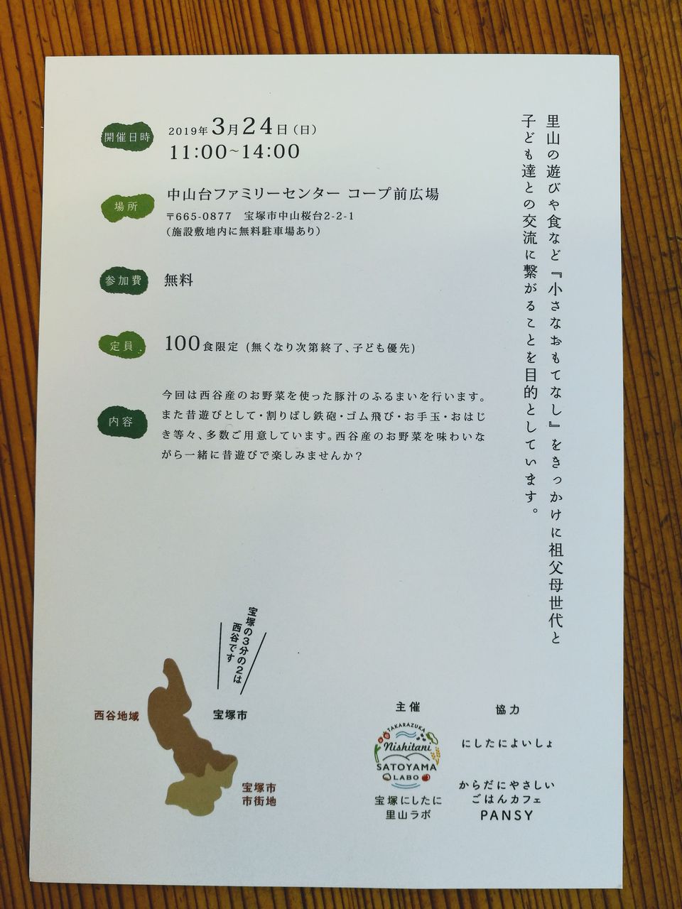 3/24(日)西谷産のお野菜を味わいながら昔遊びを楽しめる「里山の小さなおもてなし」に行ってみよう!