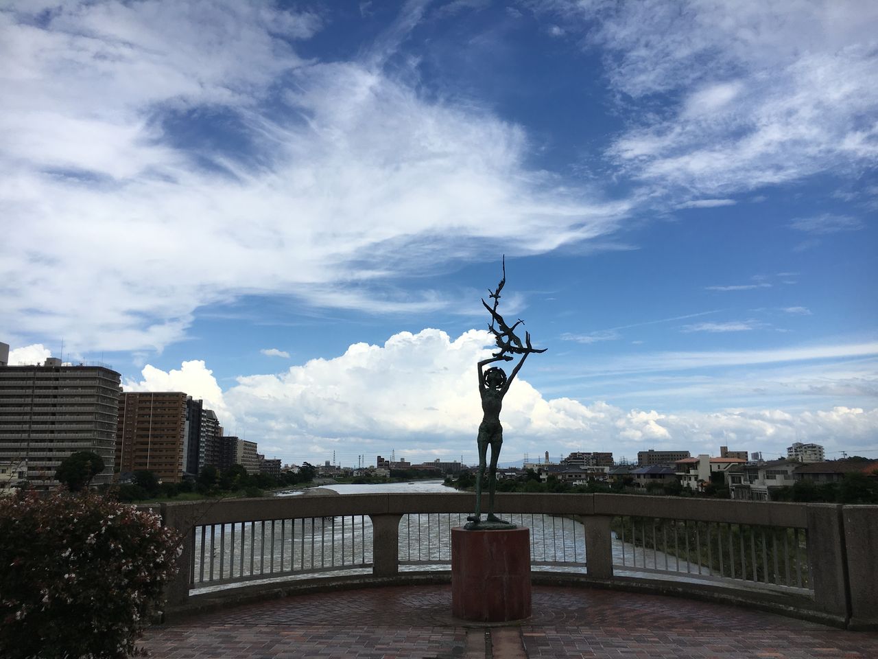 豪雨の後、宝塚大橋から武庫川の空を仰ぐ。