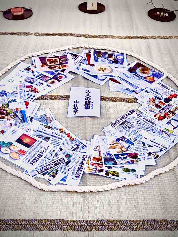 その日の新聞記事やご飯を写真撮影したものに、コメントも書かれています。「さすが中辻先生。こんなアイディア、私は思いもつかないです。おいしそうなご馳走ばかり。童心にかえり、座敷に座ってままごと遊びをしたくなりました」と来場した現代美術作家嚴愛珠さんは感想を語りました。