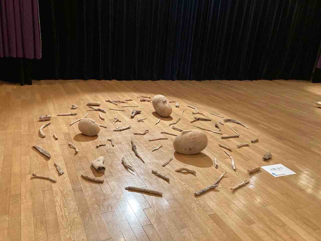 大野良平さんの「眠るひと」をテーマにした木彫作品シリーズ。今回は、流木に囲まれて眠る「眠るひと」です。「眠るひと」は永遠性を表しているそうです。