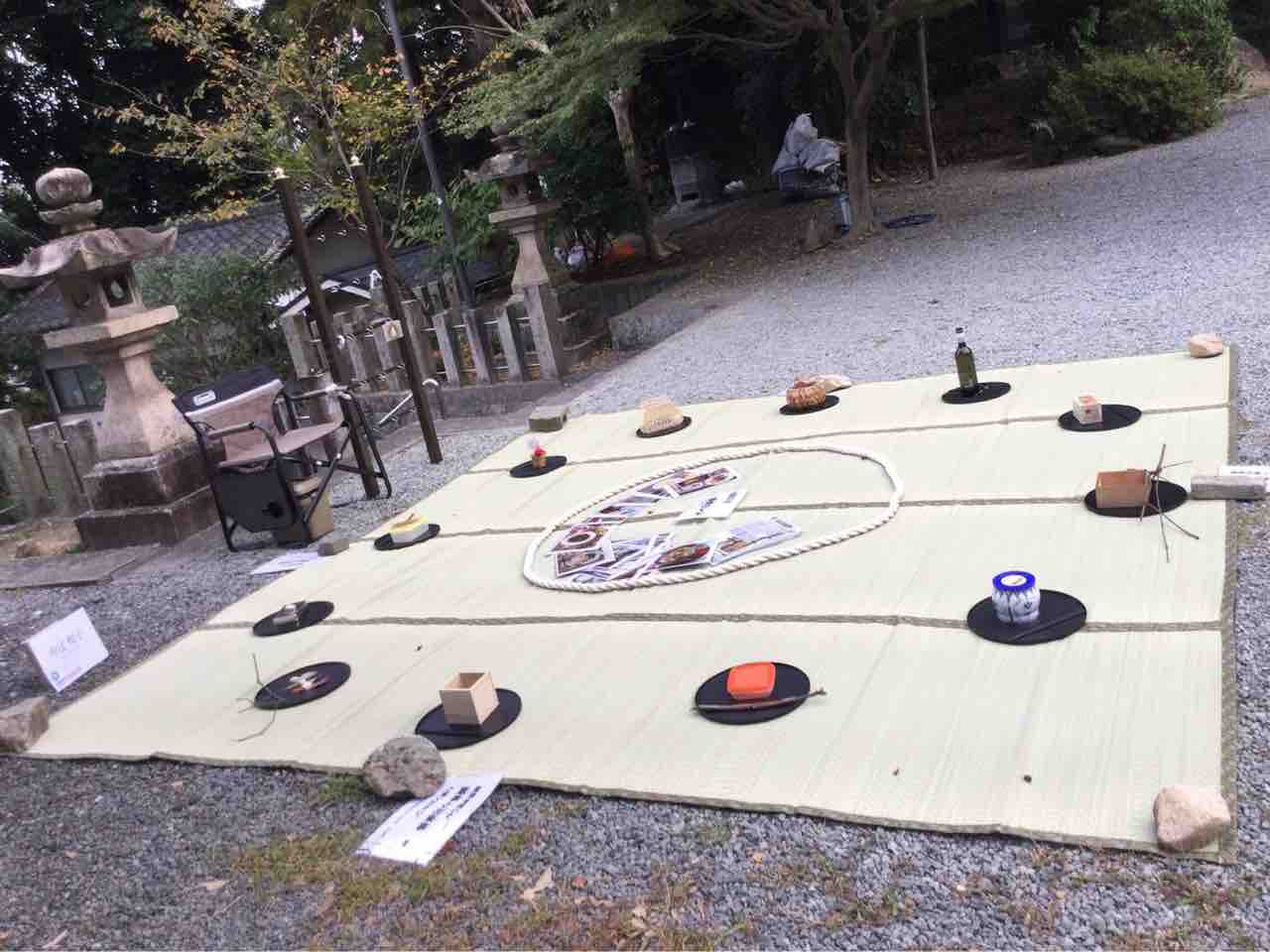 こちらは、武庫山平林寺で展示されている中辻悦子さんの「おとなのままごと」。「人間という機械?に毎時間ごとに注入されるエネルギー源三度三度の飯事(ままごと)についての再認識と遊び」(作家による作品解説)。