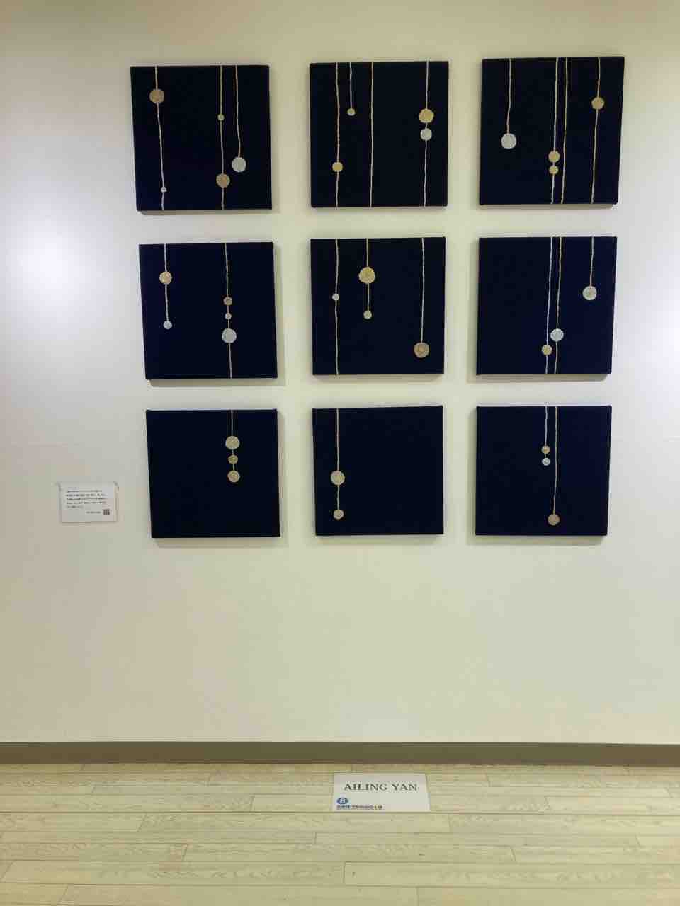 今回初出展のAILING YANさん。「手織りの布でのファブリックパネルの制作です。縦の線と横の線が交差して織り重なり、面になる。その面上だけの限られたスペースに小さな世界を⋯布の持つ柔らかさと規則正しく慎ましい織り目にのせて表現しました」(作家による作品解説)。