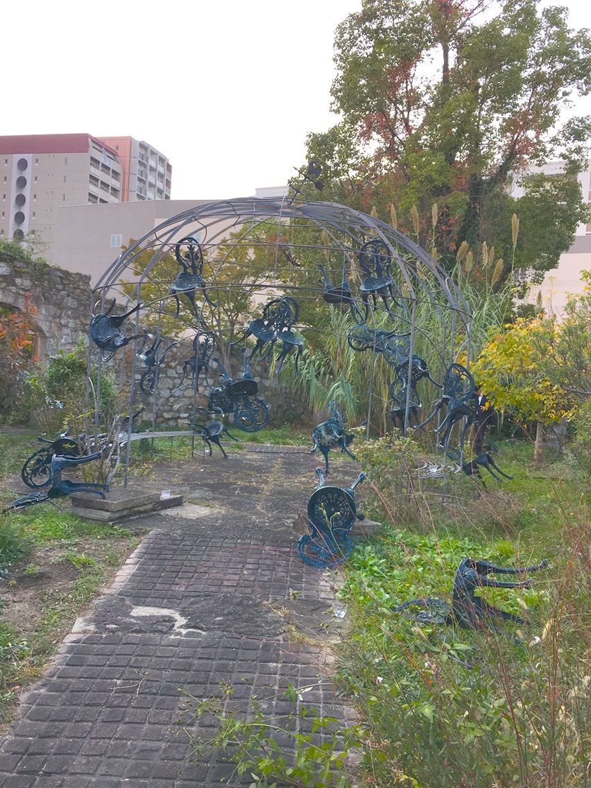 自然に景色になじんでいるもの、目をひきつけられるものなど、ガーデンフィルズの跡地を散策しながら楽しむことができる。中には雲雀ケ丘学園中高校美術部&荒木田義人氏のコラボ作品もみられる。
