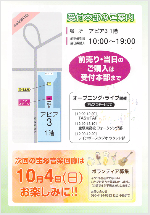 13. 2019年10月19日(土)「宝塚音楽回廊」出演アーティスト決定。 フライヤーとポスターも完成。みんなで情報を発信してイベントを盛り上げよう!