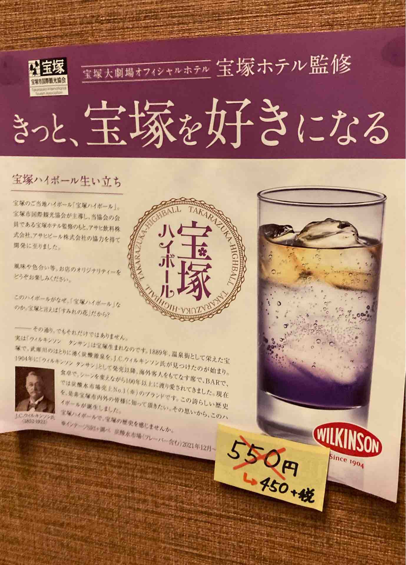 宝塚のご当地ハイボール「宝塚ハイボール」の由来が、店内に置いてある「宝塚バル」のパンフレットに書いてありました。