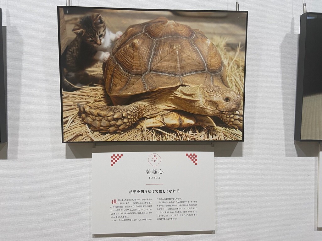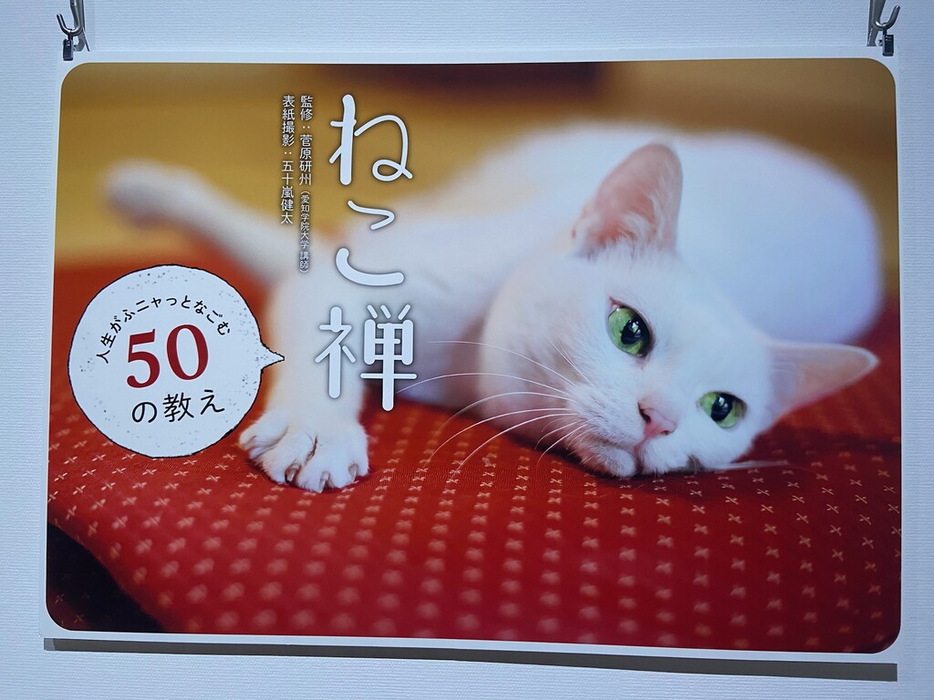 続く「ねこ禅」エリアでは、すでに出版されている本のから抜粋されて展示されていました。