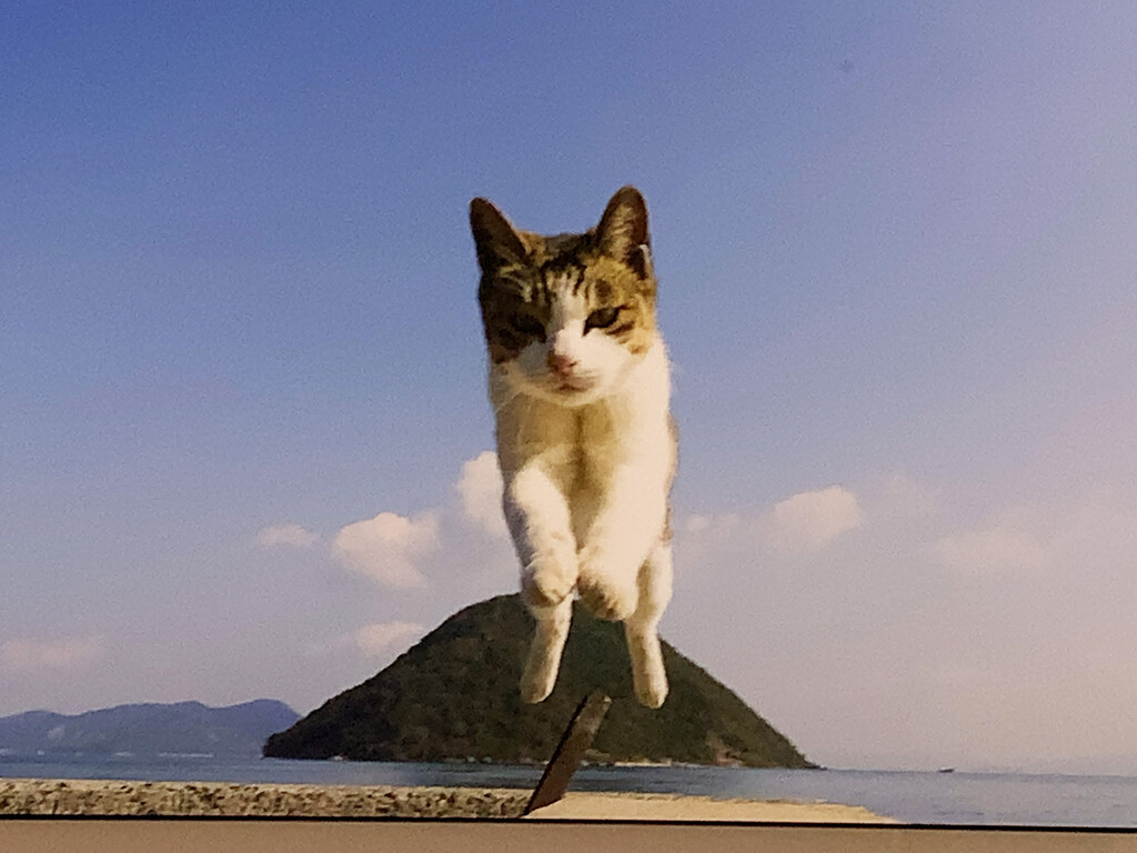 飛び出す絵本のよう、錯覚するほどの迫力のある飛び猫。
