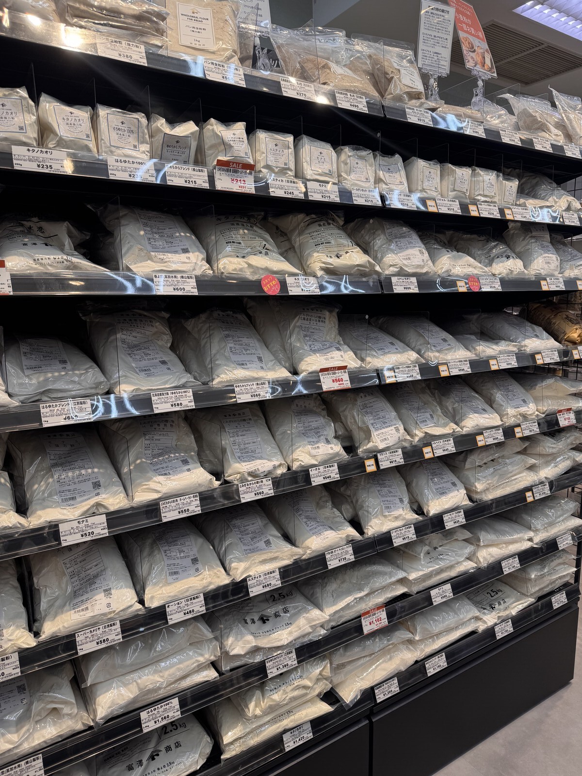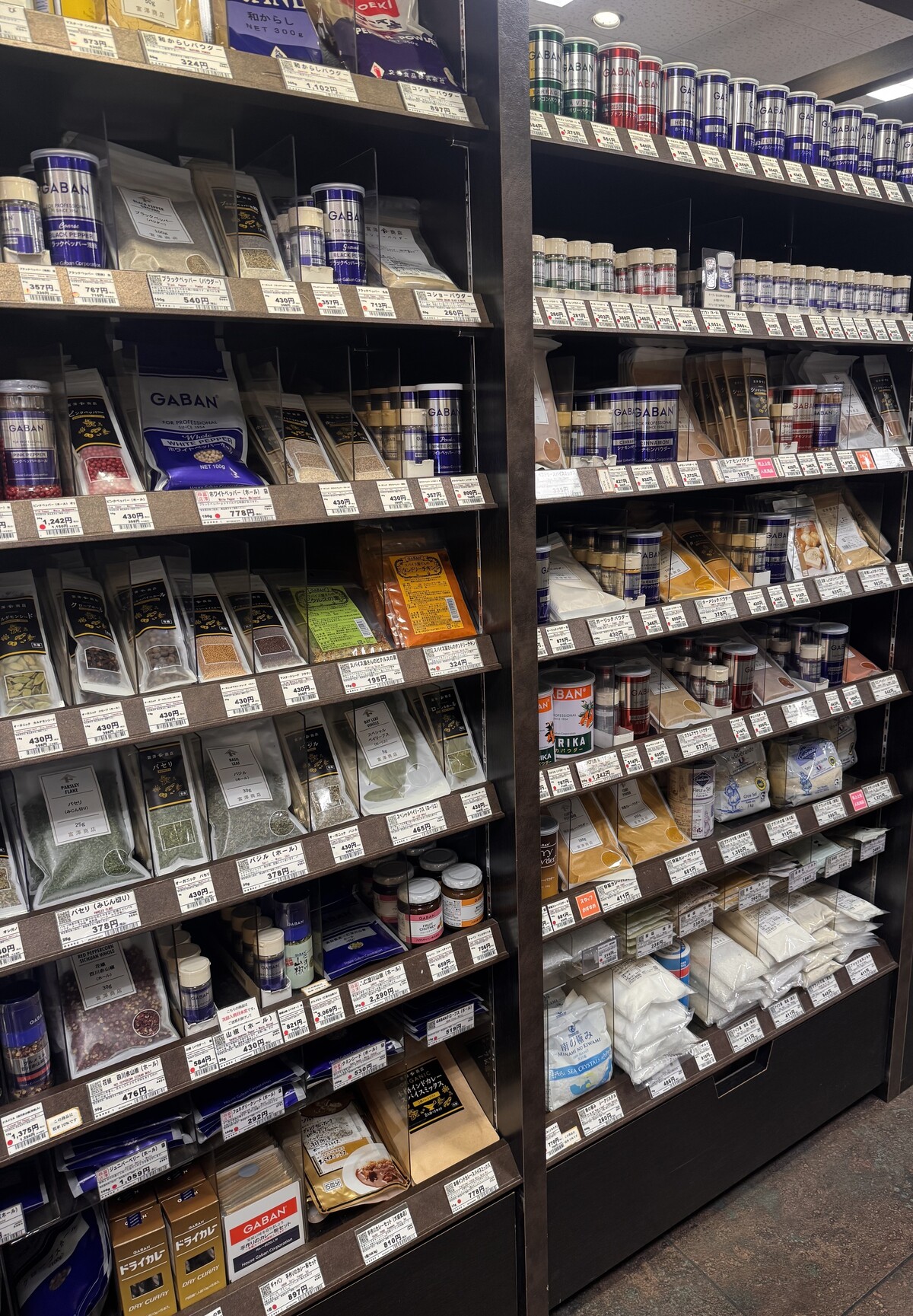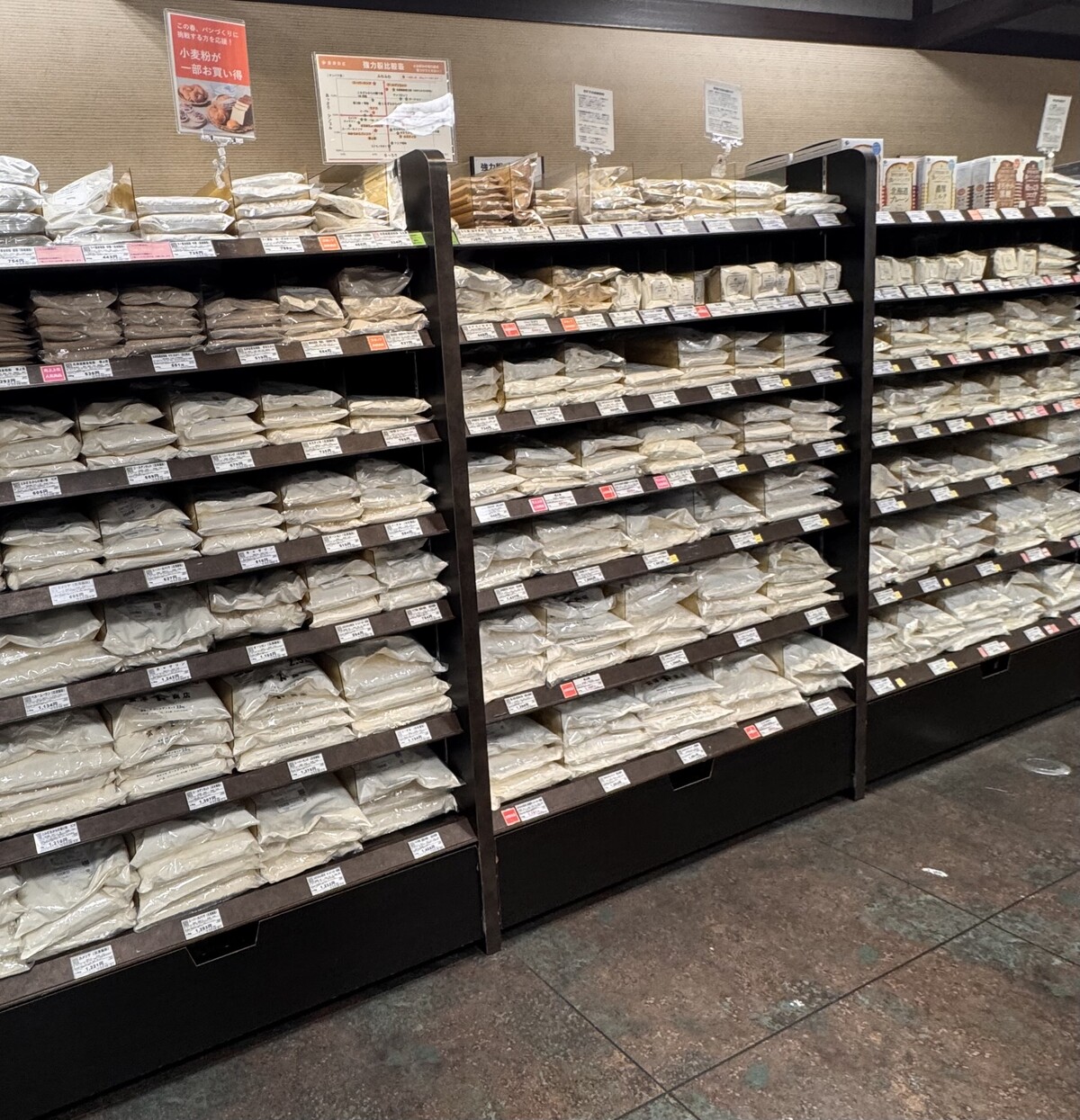 製菓・製パンの基本素材に加え、日常使いできるスパイスやミックス粉、保存食、和洋中食材などがコンパクトにまとまっており、料理初心者でも選びやすい陳列がポイント。
