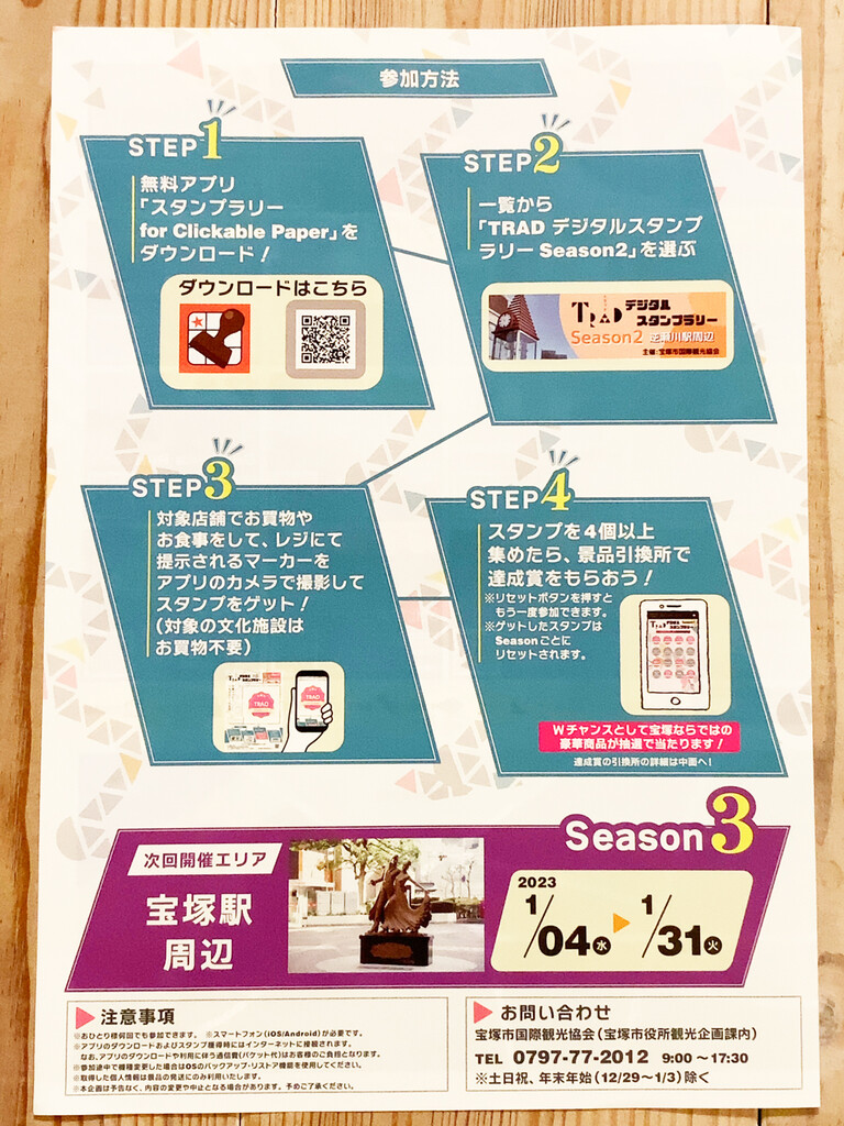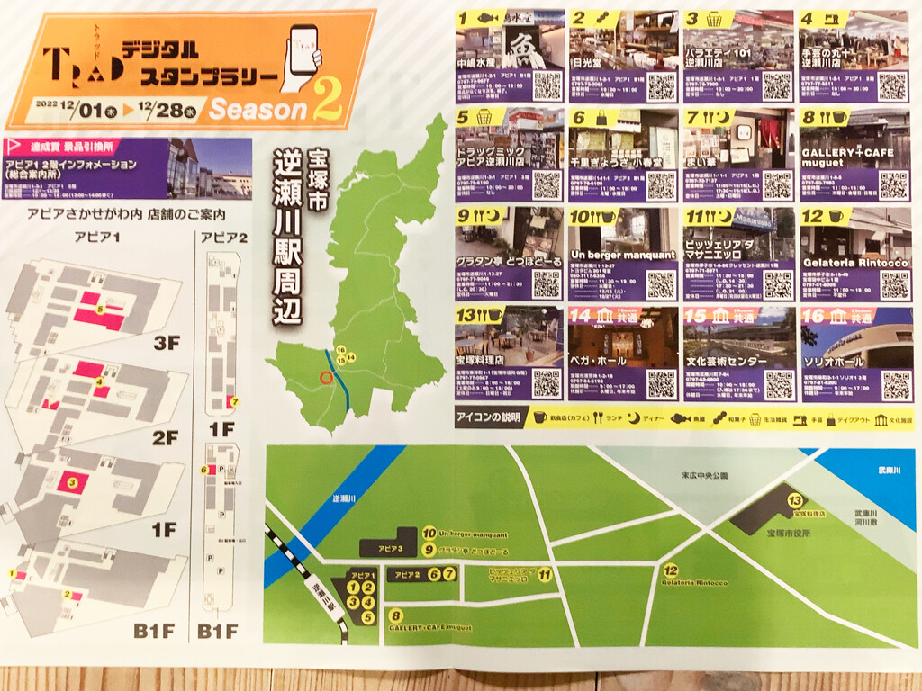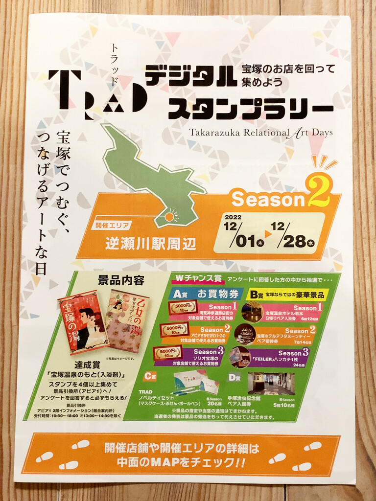宝塚のお店を回って集めたスタンプ(デジタルスタンプラリー)でいろいろな景品が当たります。