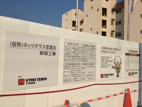 工事中の看板をよく見ると、「(仮称)ネッツテラス宝塚店」、事業の期間「平成29年10月16日から平成30年4月16日まで」とある。