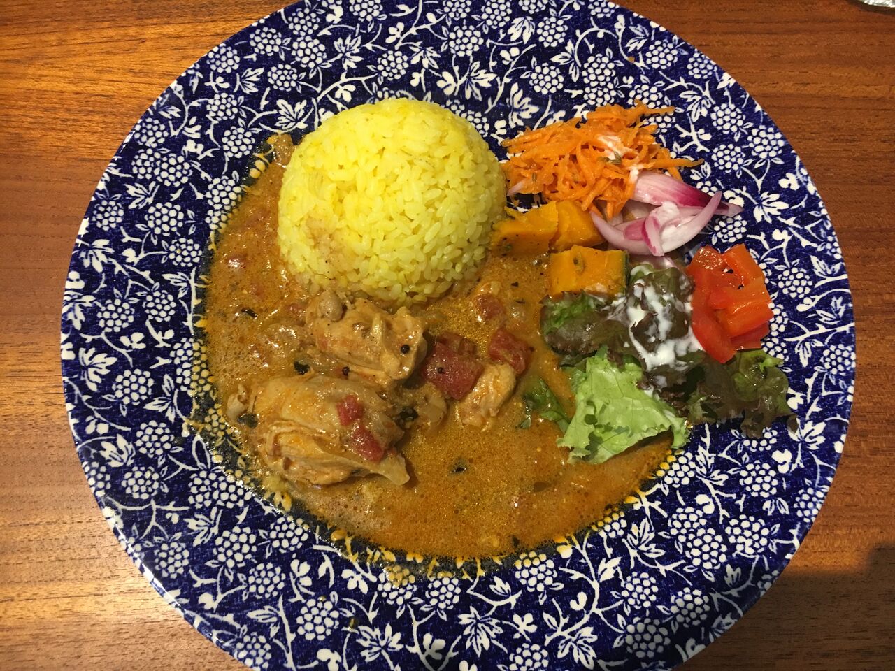 鶏もも肉はほろほろで柔らかく、スプーンでも簡単に切れるほどでした。副菜の色鮮やかな野菜の付け合わせも、カレーとよく合いおいしかったです。