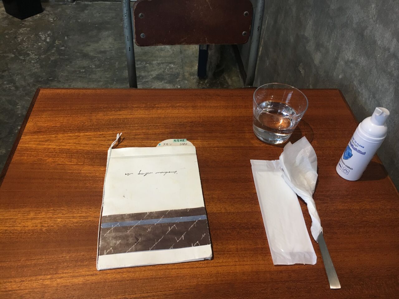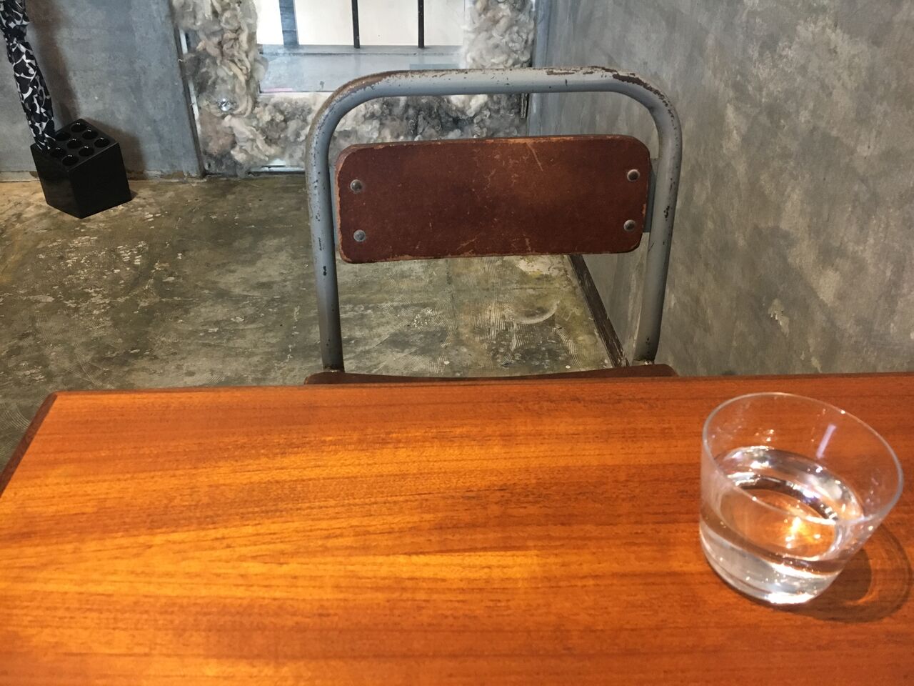 カウンターとテーブル席があり、案内された席は低めのテーブルで、小学校を思い起こさせるサイズ感。