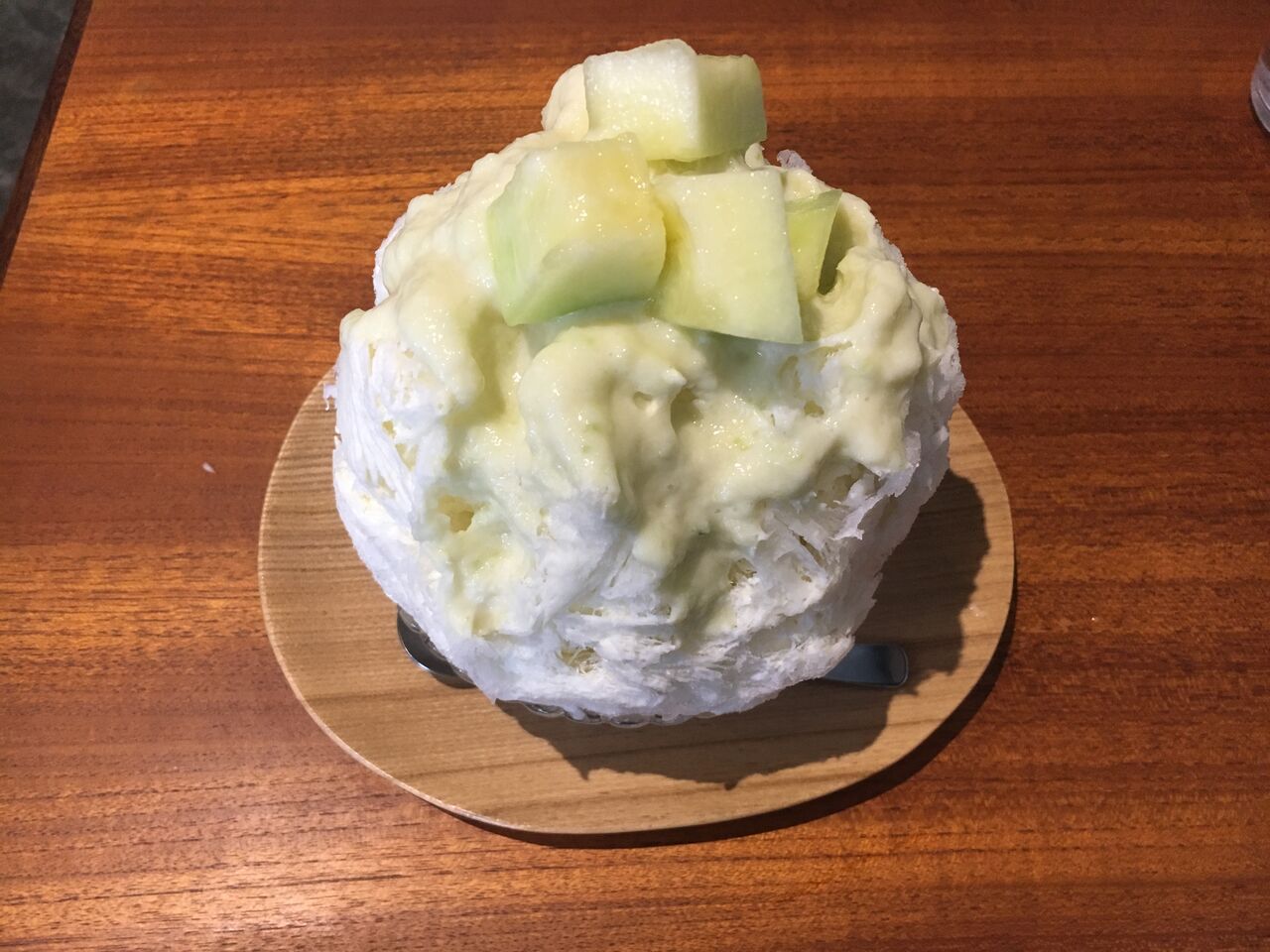氷はサクサクふわふわ。途中まで食べたところで、中からも予期せずメロンの果肉がでてきてうれしい!下の方までシロップたっぷりで、最後までおいしくいただきました。