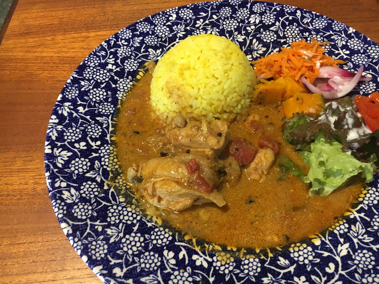 ランチに注文したのは、ヨーグルトチキンカレー。食事が運ばれて来たときに、まず、おしゃれな食器に目を奪われてしまいます。