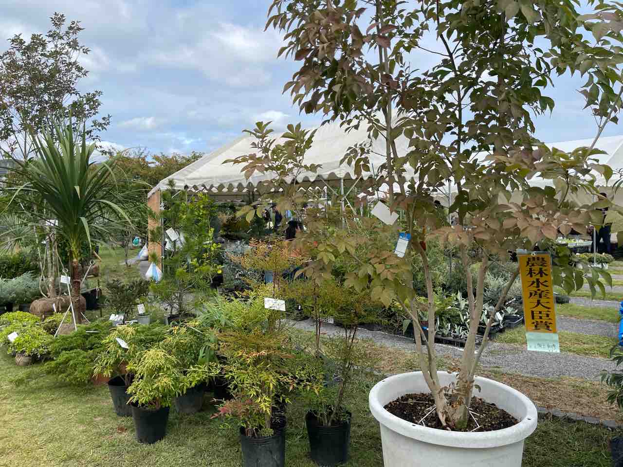 鉢物だけではなく、大きな庭園樹も充実。農林水産大臣賞受賞の木も展示されていました。