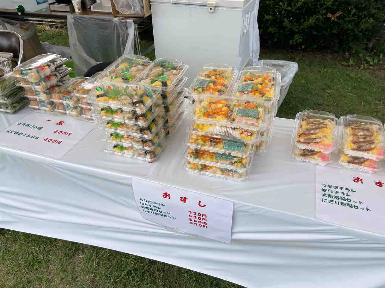 春に訪れた時は、午後だったのでフードが完売していましたが、午前中はこの通り。お寿司というのがいい感じです。