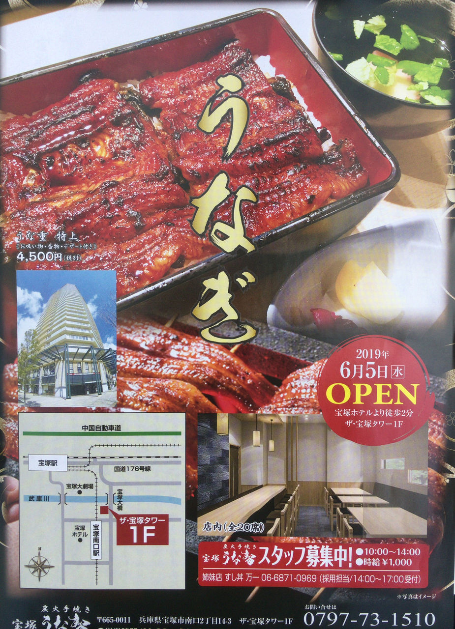 阪急 宝塚南口駅前 ザ・宝塚タワー1階 宝塚 武庫川沿いの角に本日オープンした 筑紫 金うなぎ 宝塚「うな智」は11:00オープンから行列はなくならずー。