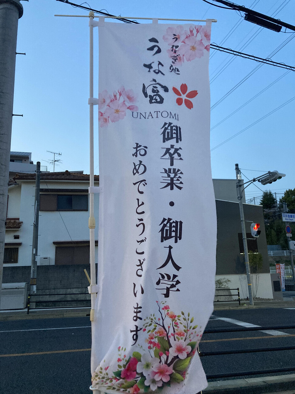 3月には、「ご卒業おめでとうございます」のメッセージが掲げられていました。