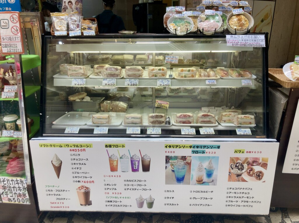 ハンバーグサンド、メンチカツサンド、BLTサンドなどなど…。