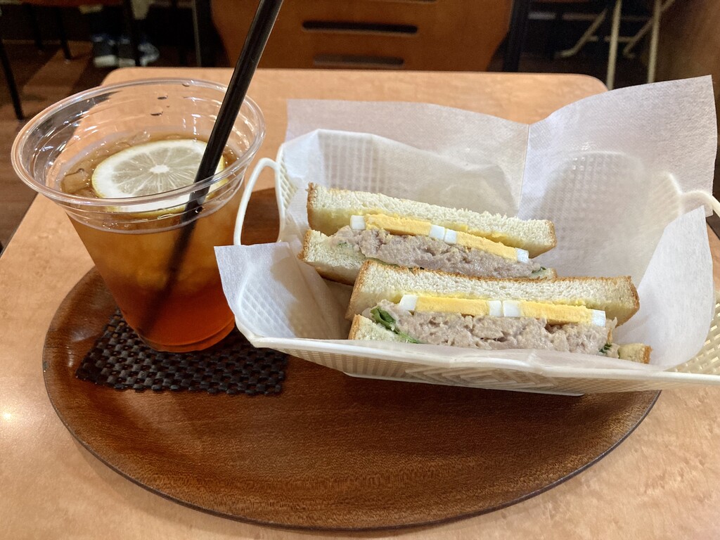 今回は、ツナエッグサンドとアイスティーを注文し、せっかくなのでイートーインスペースでいただくことにしました。