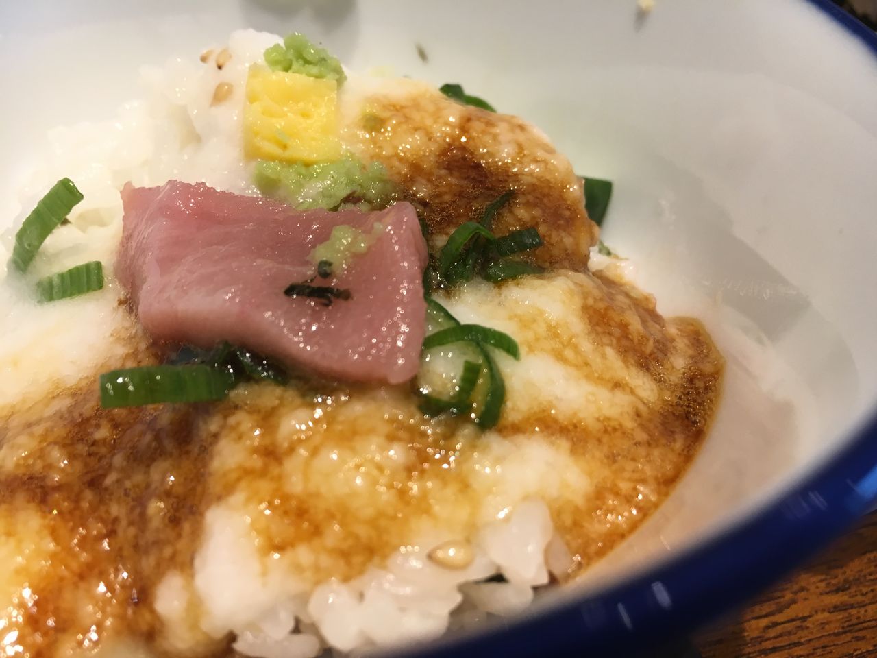 二度目はとろろを和えてまぜあわせ、鰹出汁入り醤油をかけて。とろろに包まれたご飯とお魚がまろやかに口の中で広がる感覚だ。