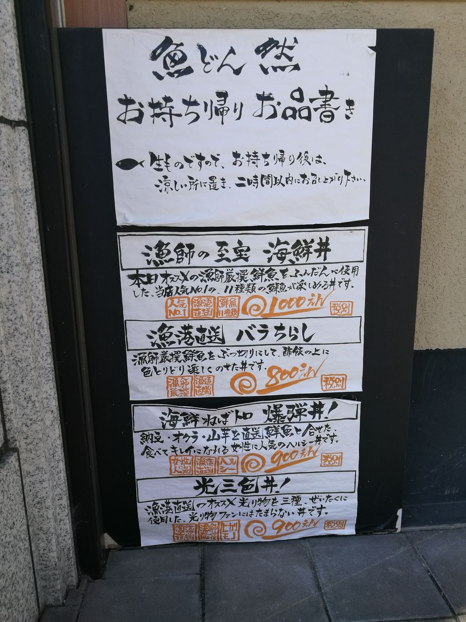 持ち帰ってお家で新鮮でおいしい「魚どん 然」を味わえるのは嬉しいですね。