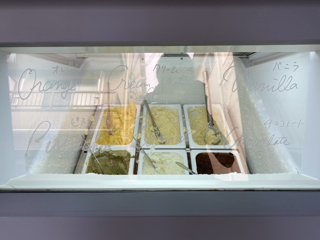 ジェラートはバニラ以外にもオレンジやココナッツ・ピスタチオなど種類も豊富です。