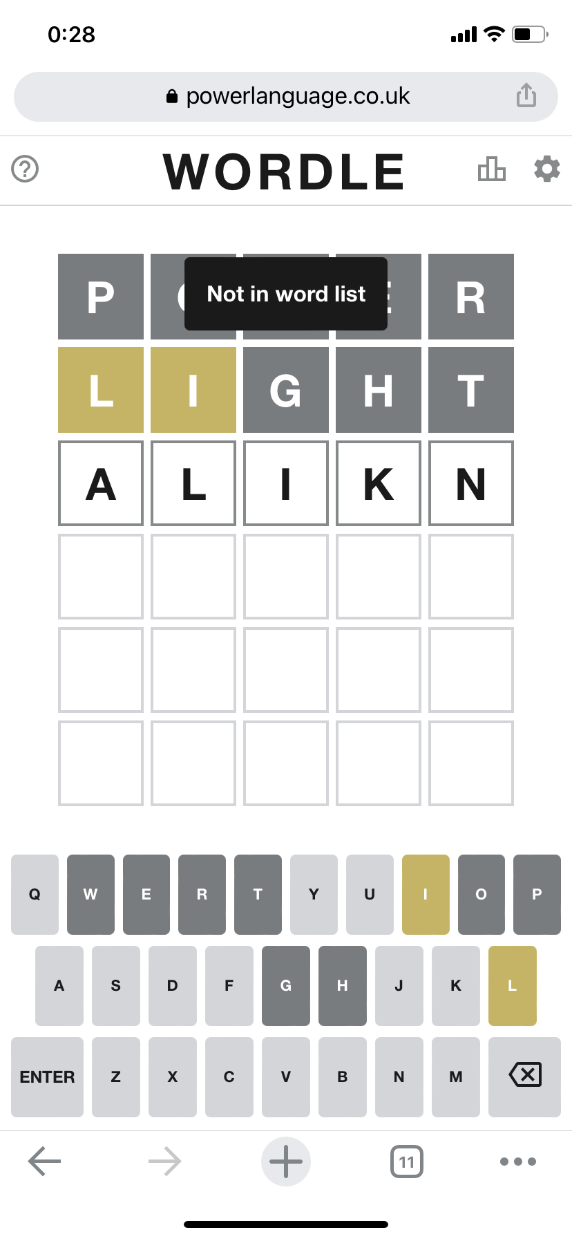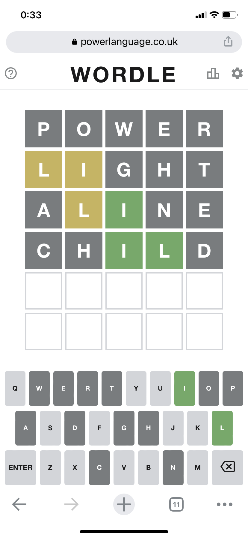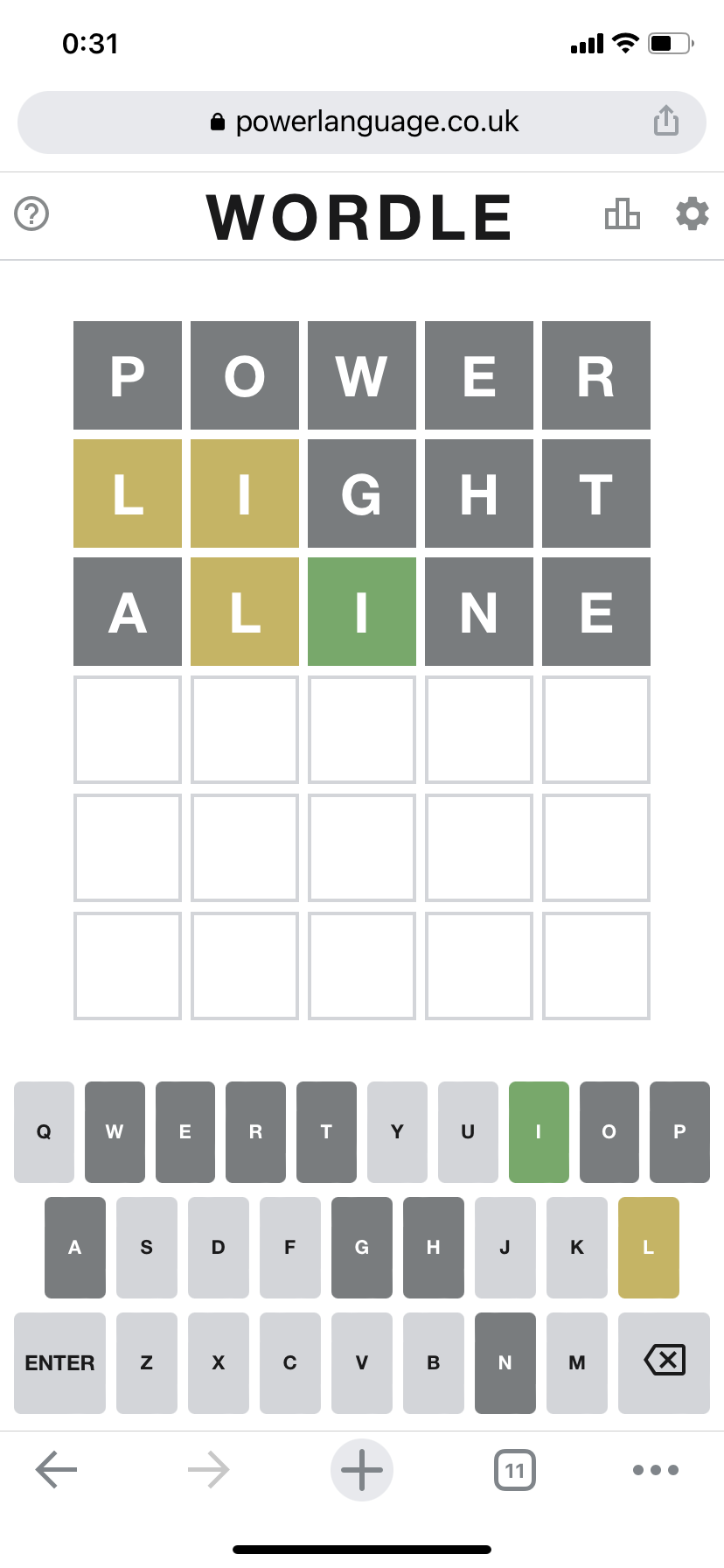 ENTERをタップすると「L」が黄色に、「I」は緑に。