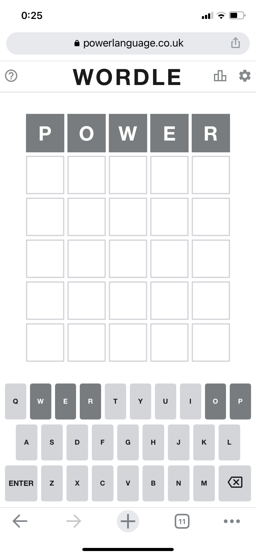 英単語5文字の入力後ENTERタップで確定させると、その文字が使用されているか、位置と同時に色で教えてくれる。入力したアルファベット文字が、正解の位置の場合は緑、使用されているが位置が違う場合は黄で表示される。これらを次の入力のヒントに絞り込んで行くというわけだ。