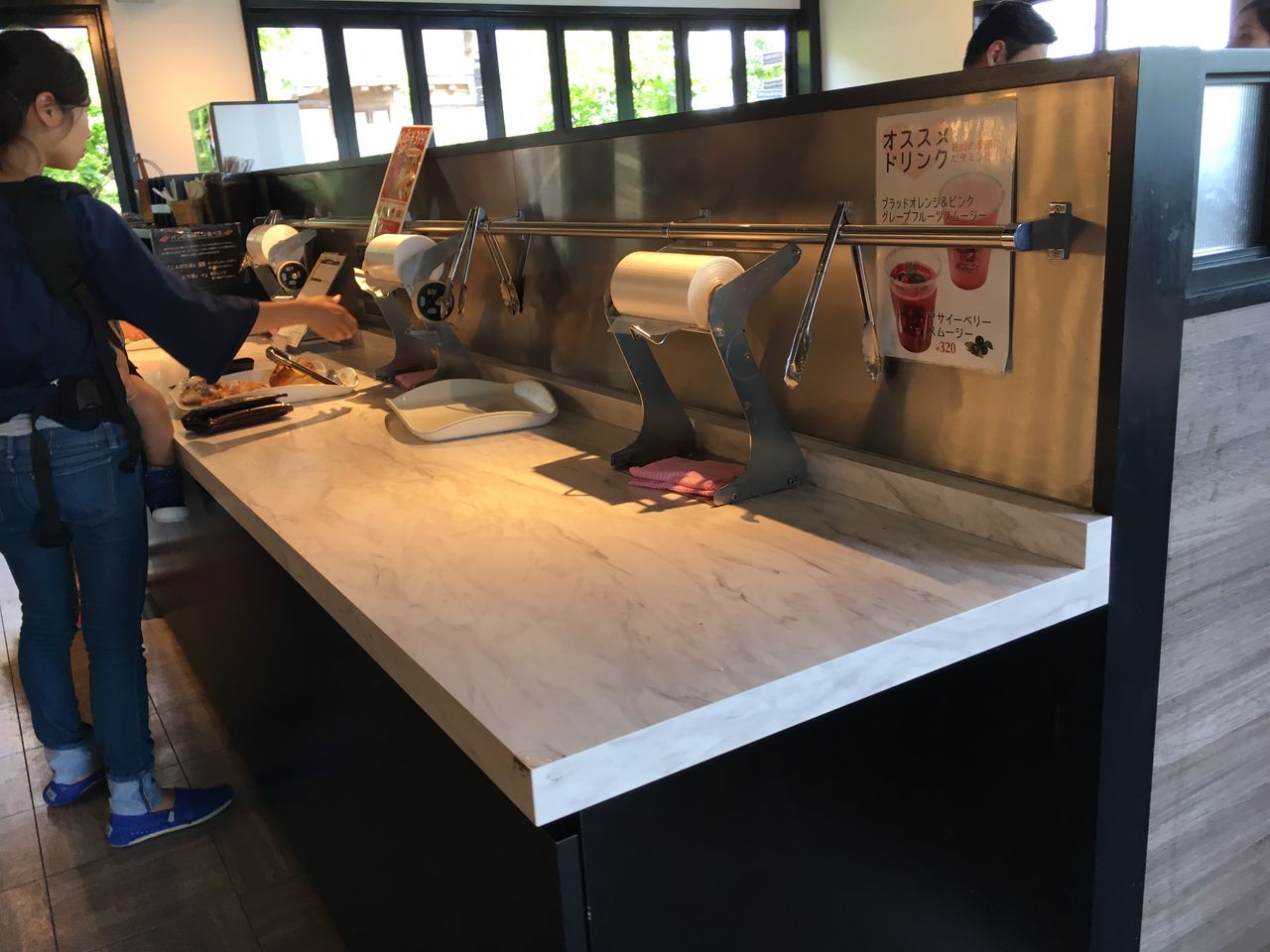 店舗の仕組みとしては、テイクアウトの人の包装はセルフになっている。従業員の時間コスト削減で、100円でパンを提供する為の工夫なのであろう。