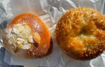 やはり店長おすすめの、ハーブチーズのベーコンエピ(150円)。ベーコンエピにハーブチーズ、絶対美味しい組み合わせですね。スタッフおすすめのチーズフォンデュフランス(150円)と紅茶のアーモンドツイスト(130円)。紅茶のアーモンドツイストを買ってみたら、ほどよい甘さと香りが素敵でした。