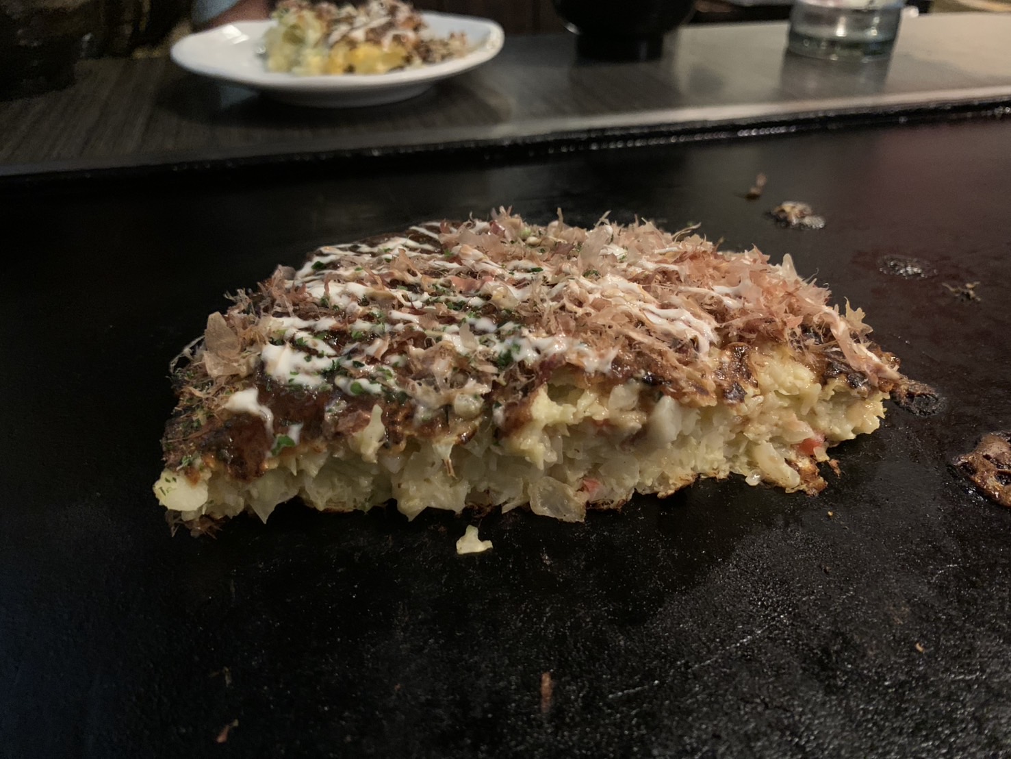鉄板焼きでいただくお好み焼きは、どこかなつかしく落ち着く美味しさでした。