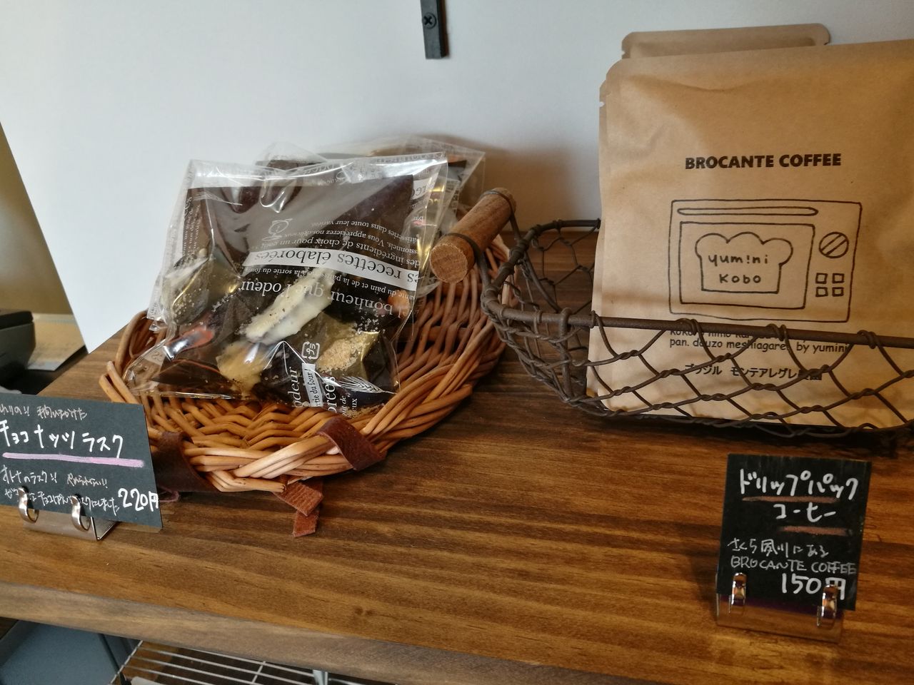 プレオープンとはいえ、オーナー自ら焼いたパン(yumini-koboのパン)がいろいろ棚に並んでいました。