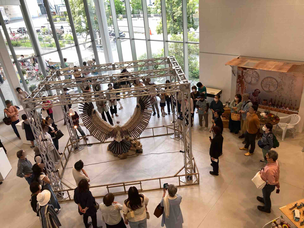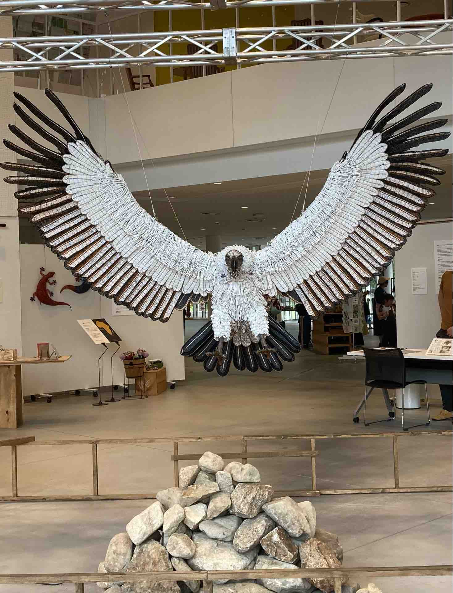ギャラリートークではZUVALANGAの作品も紹介されました。まずは圧巻の大作、「ケープハゲワシ」。翼を広げた長さが2.8mもある、実物大の大きさです。約34キロものビーズを使って、北窓さん夫妻が2人で半年かけて製作したそうです。